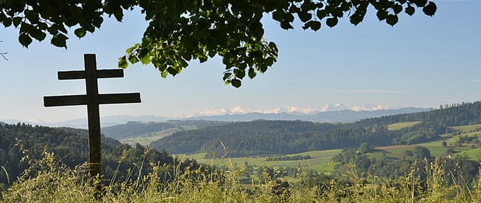Der Isehuet ist eine eindrucksvolle Aussichtsplattform mit Blick auf die Berner Alpen – mit Eiger, Mönch und Jungfrau – sowie über das gesamte Oberaargau bis hin zur Jurakette. Mitten in unserem Betrieb gelegen, prägt er die Landschaft durch eine markante, große Linde, die zugleich unser Logo inspiriert.
